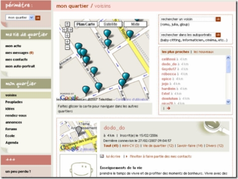 Au cœur du site, il y a la carte des voisins qui permet de se promener