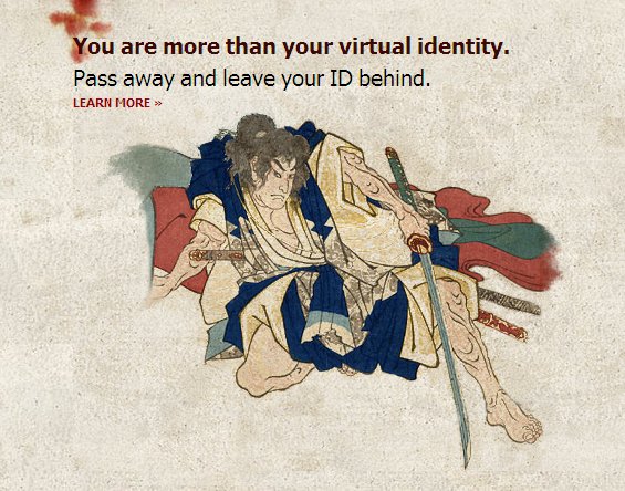 Seppukoo, tout d'abord, qui tire son nom d'une déformation de «seppuku», le suicide honorifique pratiqué par les samouraïs du Japon ancien. Conçu par un groupe d'artistes italiens, Les Liens Invisibles, le site propose de supprimer son profil Facebook en choisissant les derniers mots qui apparaîtront sur une page «mémorial». Il attribue à chaque auteur d'un «suicide virtuel un score», qui grimpe en fonction du nombre d'amis qui ont procédé eux aussi au rituel.Selon l'un de ses créateurs, interviewé par Le Post, Seppukku aurait servi à plus de 20.000 personnes en novembre dernier.
