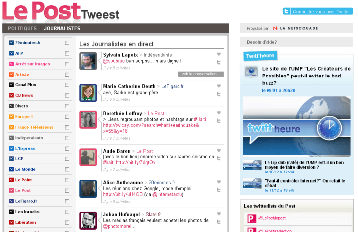 Tweest by Le Post = Livewire + Muckrack, des rivières de flux Twitter sélectionnés