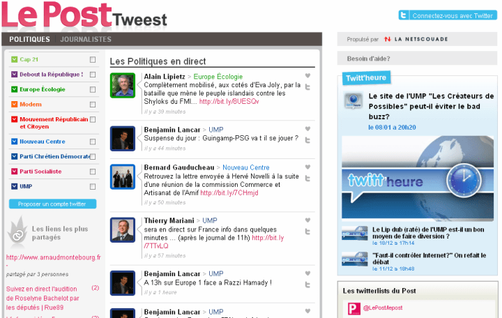 - le site Politwitt qui propose déjà un flux de gazouillis de personnalités politiques françaises
