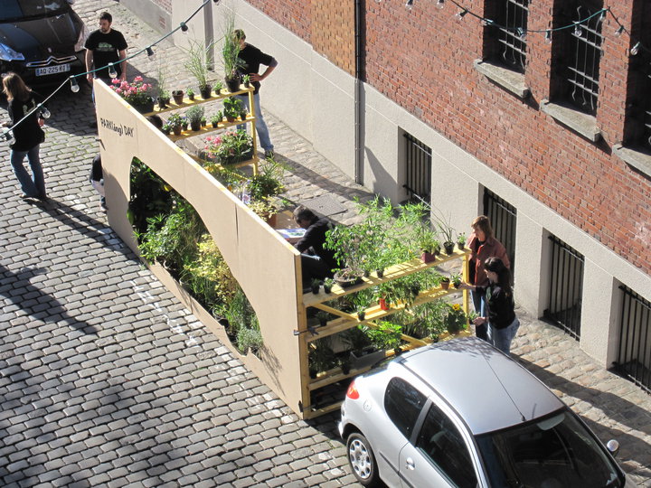 Aujourd'hui et demain, ce sont des jardins qui poussent dans les rues de plusieurs villes de France, à l'initiative de Park(ing) Day, une idée importée de San Francisco, où elle est née en 2005. Le concept est le même, l'occupation d'une ou plusieurs places de stationnement de surface pour les transformer en jardins éphémères. Quelques jolies images d'habitants souriants viennent nous confirmer qu'il vaut mieux un jardin, même de 8m², qu'une place de parking pour rendre une ville agréable. Avec une mention toute spéciale aux Lillois, qui ont créé un véritable jardin urbain, séparé de la circulation par un mur en bois découpé en forme de voiture. Une forme d'art !