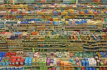 Une société de consommation est une société dans laquelle l'achat de biens de consommation est à la fois le principe et la finalité de cette société. Dans celle-ci, le niveau moyen de revenu élevé satisfait non seulement les besoins considérés comme essentiels (alimentation, logement, éducation, santé,…) mais il permet aussi d'accumuler des biens (par plaisir, pression sociale ou publicitaire) et de les utiliser ou juste les montrer (pour des raisons esthétiques ou autres), dépenses que certains jugent superflues[3]. Son symbole est l'objet « consommable » qui s'use et qu'il faut renouveler, voire l'objet jetable. S'il est possible de produire des objets plus résistants, cela augmenterait leur coût et leur durée de vie, ce qui nuirait alors à la consommation.