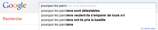 Parfois utile, parfois décrié, parfois hilarant, Google Suggest, cette fonctionnalité qui suggère automatiquement la fin de vos phrases selon les recherches les plus populaires, pourrait passer pour un service anodin s’il n’offrait pas une véritable plongée dans la tête des utilisateurs et de leurs préoccupations parfois insolites.
