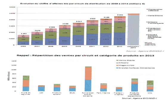 L’agriculture biologique est un mode de production qui connaît une croissance constante en France depuis de nombreuses années, même si, avec seulement 4 % la surface agricole utile (SAU) elle représente une part plus faible de la SAU que dans d’autres pays européens. L’agriculture biologique est un marché de plus de 4,5 milliards d’euros en 2013, qui a doublé entre 2007 et 2012. Les produits issus de l’agriculture biologique représentent 2,5 % du marché alimentaire. Les Français sont près d’un sur deux à consommer bio au moins une fois par mois (48).