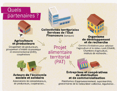 Tout projet doit commencer par un diagnostic de territoire partagé par les acteurs locaux et la mise en place d’une instance collégiale pour suivre l’état d’avancement du projet (le PAT). Les directions régionales de l’agriculture, de l’alimentation et de la forêt (DRAAF) peuvent apporter une aide à la réalisation de ce diagnostic. Il peut mobiliser des fonds publics – appel à projet du programme national de l’alimentation du ministère de l’agriculture, crédits du fonds européen agricole pour le développement rural (FEADER) ou du fonds européen de développement régional (FEDER), appels à projet des pôles territoriaux de coopération économique (PTCE), des lignes dédiées en région – et privés ou encore générer leurs propres ressources.