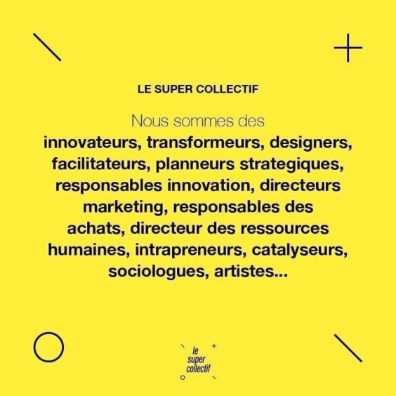 Le super collectif c'est une association qui aide les professionnels de l'innovation et la transformation qui souhaitent : renouveller leurs approches, se former à de nouveaux outils, monter sur des missions à plusieurs, étendre leurs réseaux d'infuence…