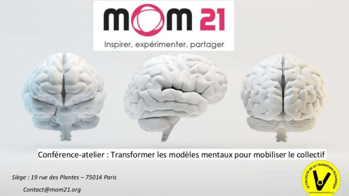 Merci MOM21 — Mouvement pour l’Organisation et le Management du 21ème siècle pour cette super occasion de prendre conscience de ce qui est en jeu dans la transformation des modèles mentaux et en quoi elle est essentielle.