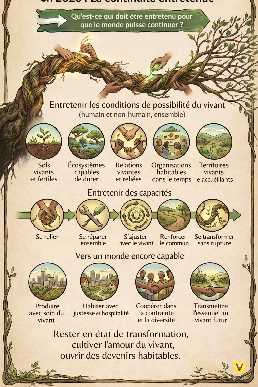 🌱 La meilleure chose à se souhaiter en 2026 : entretenir les capacités du vivant — humains compris — à continuer. Rejoignez le REGENERATIVE CIRCLE LEADERSHIP https://lnkd.in/emw6QetT