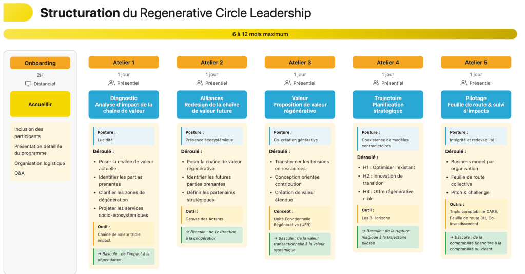 Pour découvrir le détail complet des ateliers : lire l’article sur le Regenerative Circle Leadership et le RegenBMC