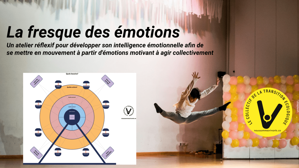 La fresque des émotions c’est un atelier réflexif en 3h qui permet de développer son intelligence émotionnelle afin de se mettre en mouvement à partir d’émotions motivant à agir collectivement La fresque des émotions